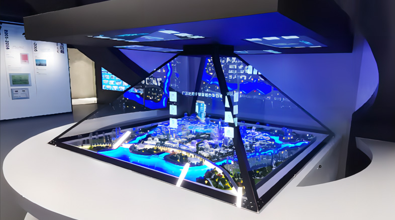如沉浸式影院、結(jié)構(gòu)投影、全息成像、AR/VR技術(shù)等等,以數(shù)字化技術(shù)營(yíng)造智慧空間里的交互體驗(yàn)與生動(dòng)感知。